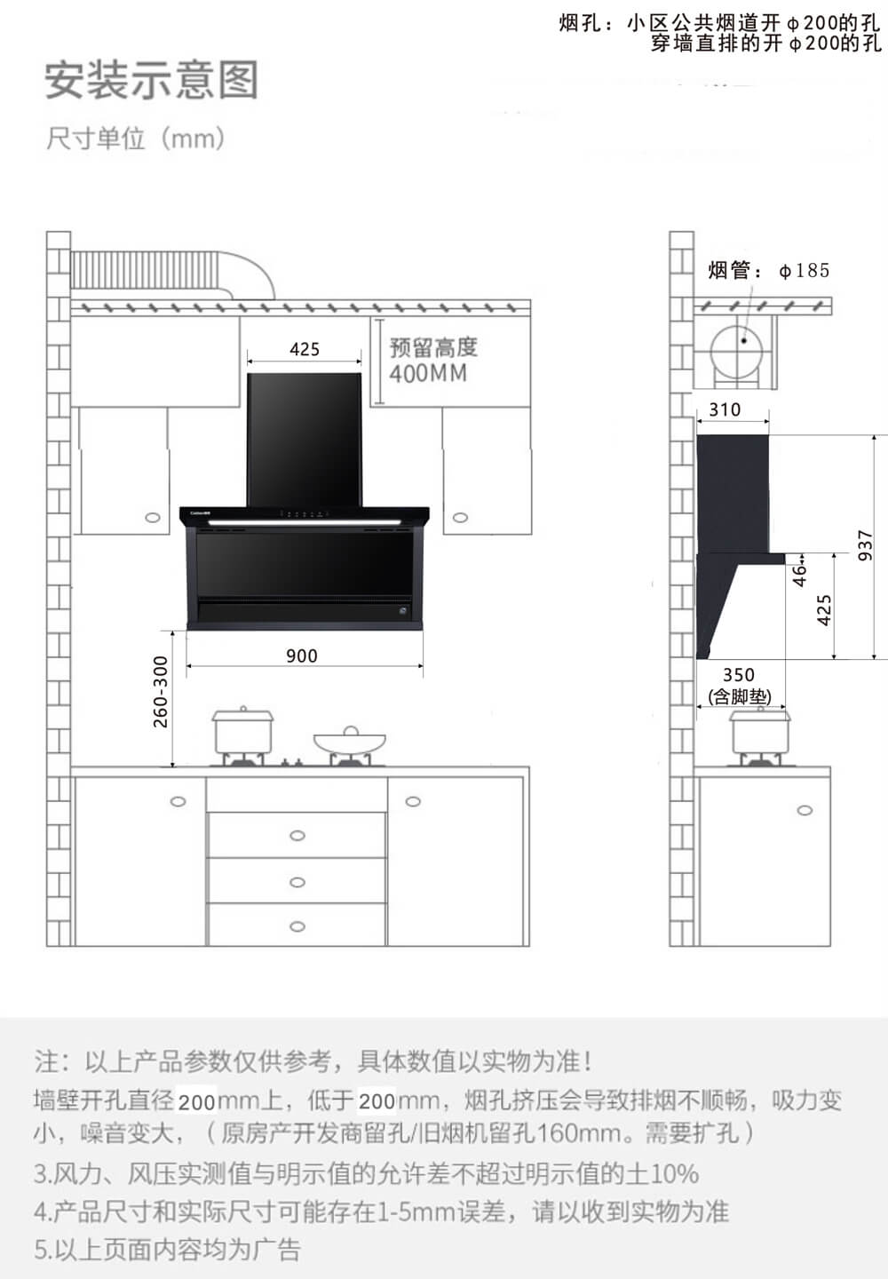 外形尺寸: 895×350×937mm 風壓: 450Pa