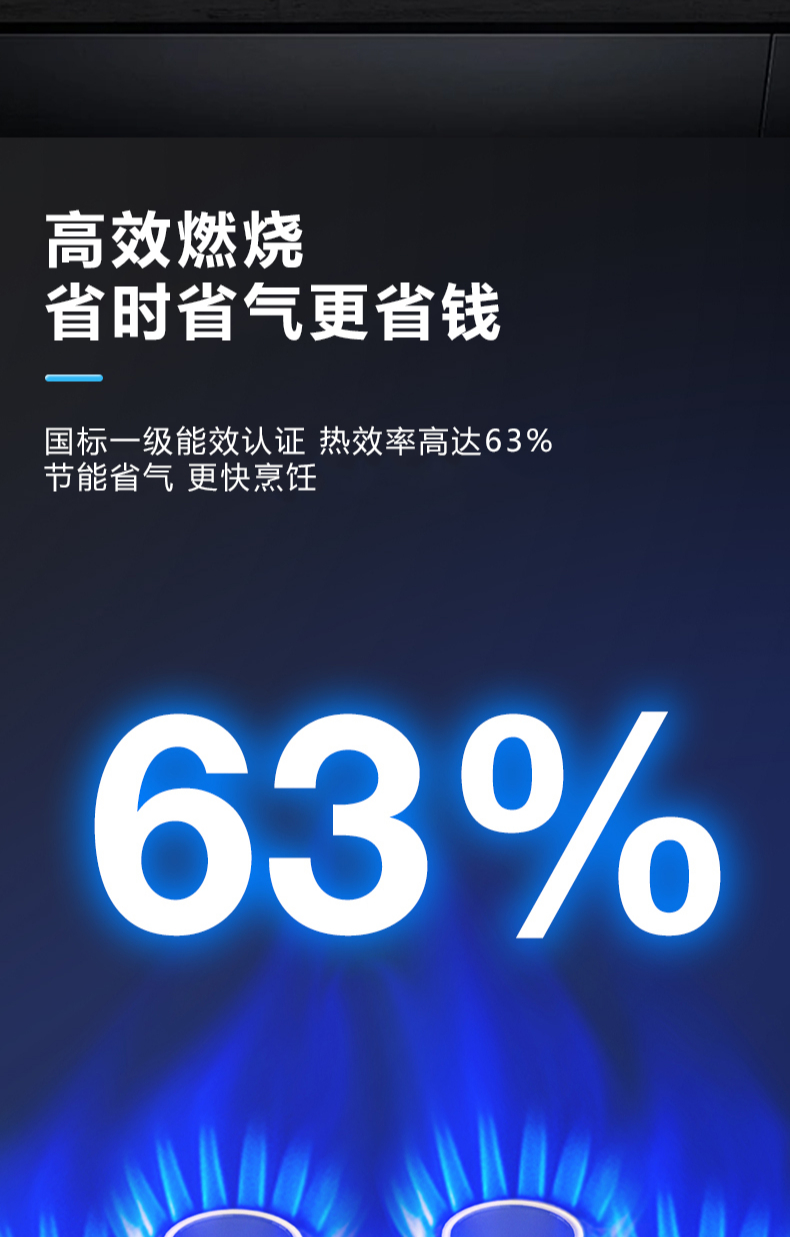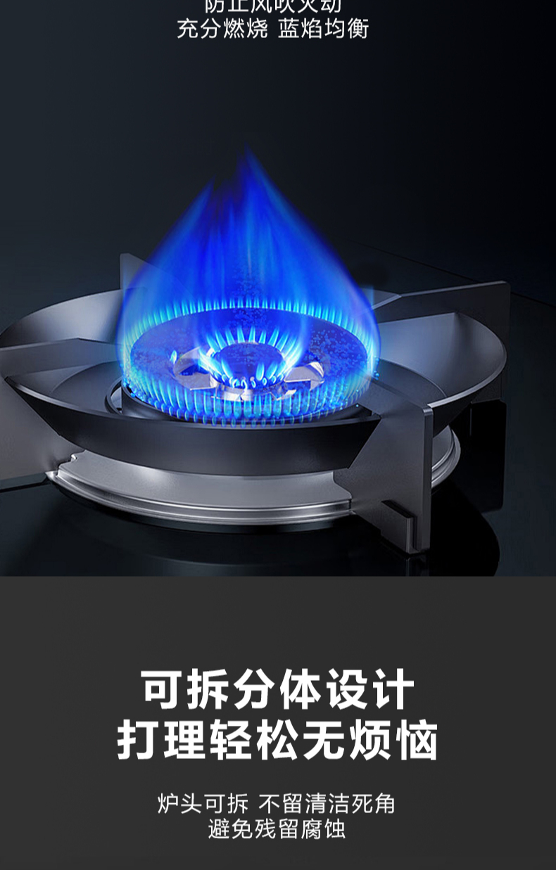 5 2kW大火力,九頭猛火灶,63%熱效率,6mm厚鋼化玻璃面板,4層防爆