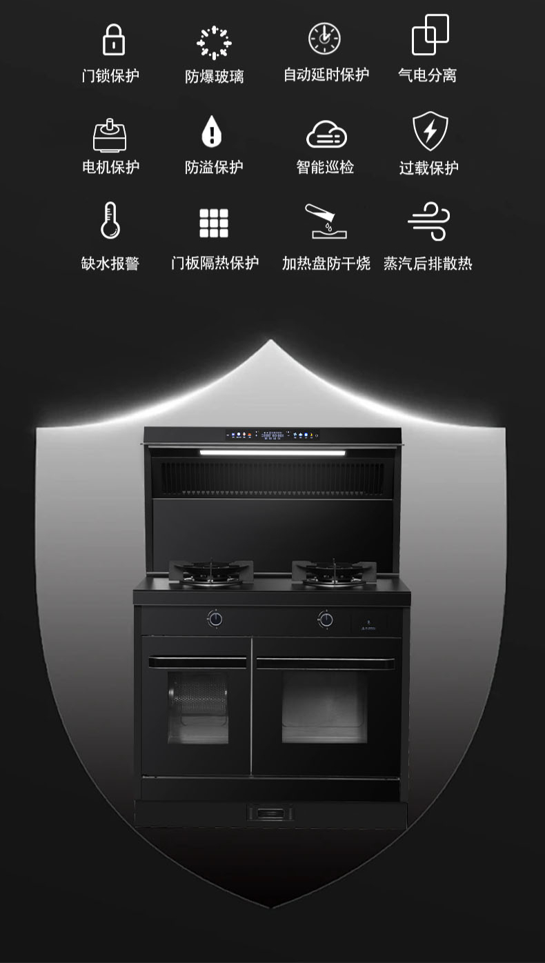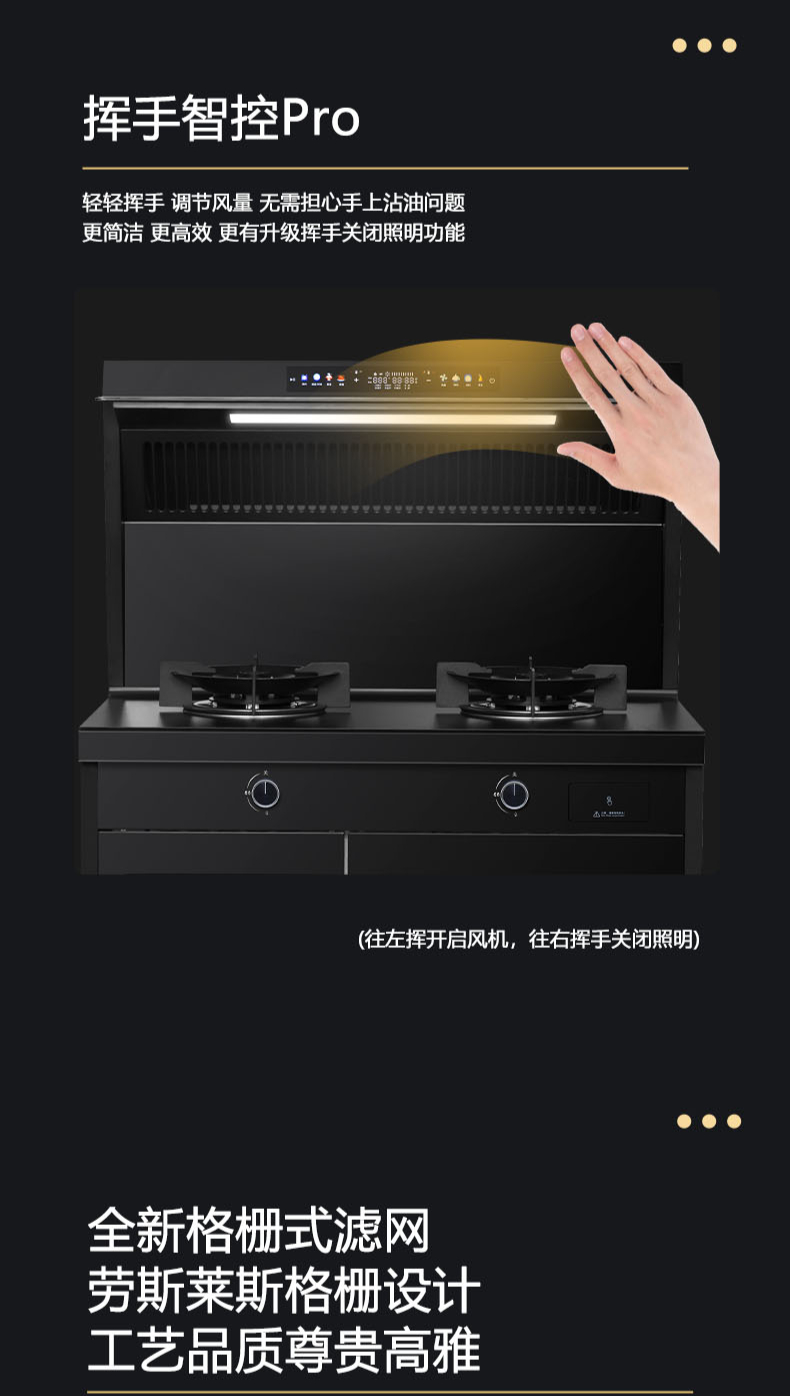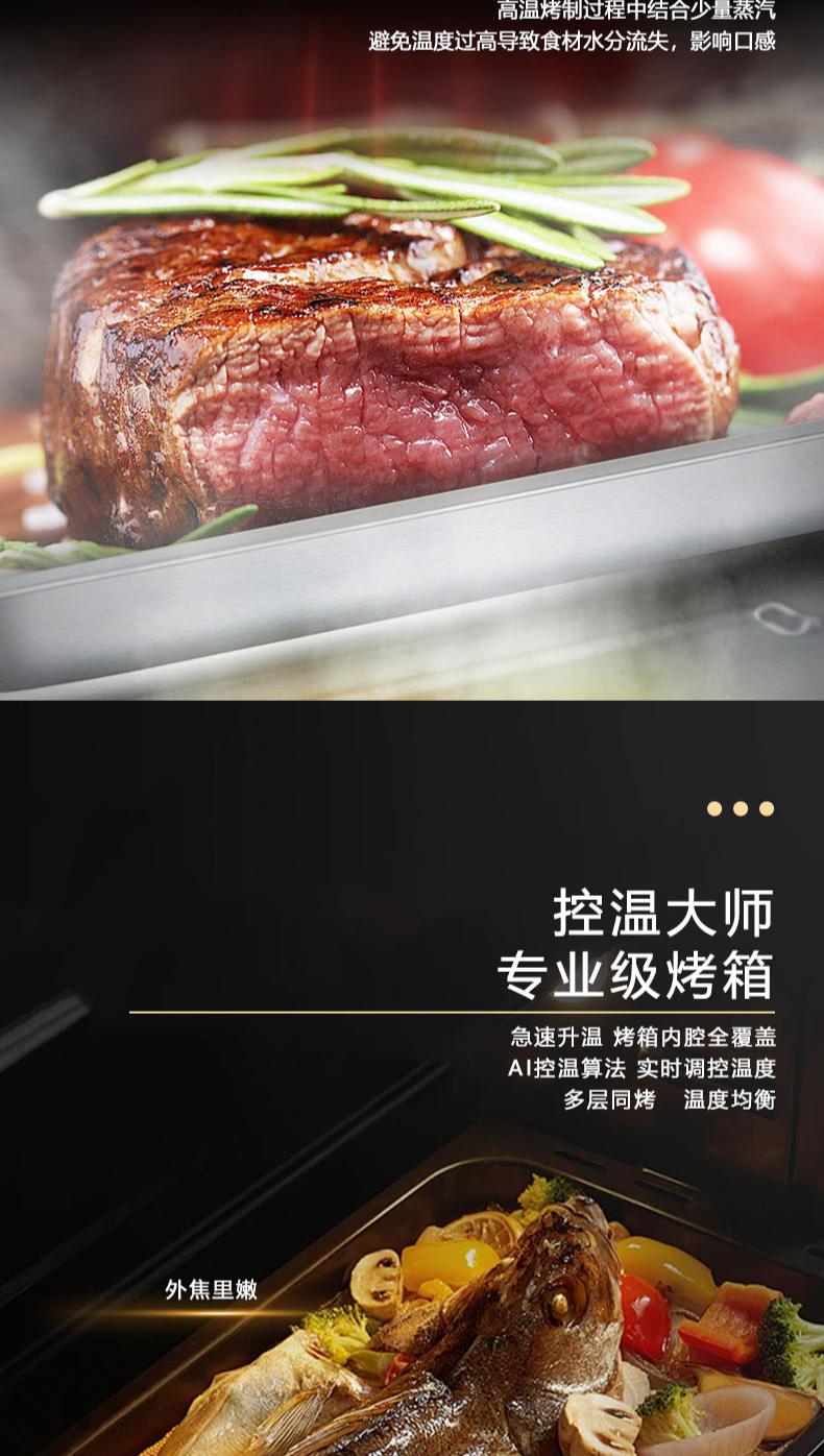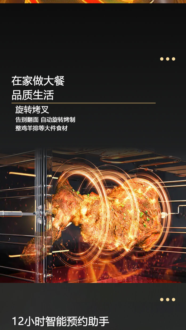 26m3每分巡航風(fēng)量,左烤右蒸烤,旋風(fēng)轉(zhuǎn)烤,智能彩屏,揮手感應(yīng),雙灶定時(shí)熄火