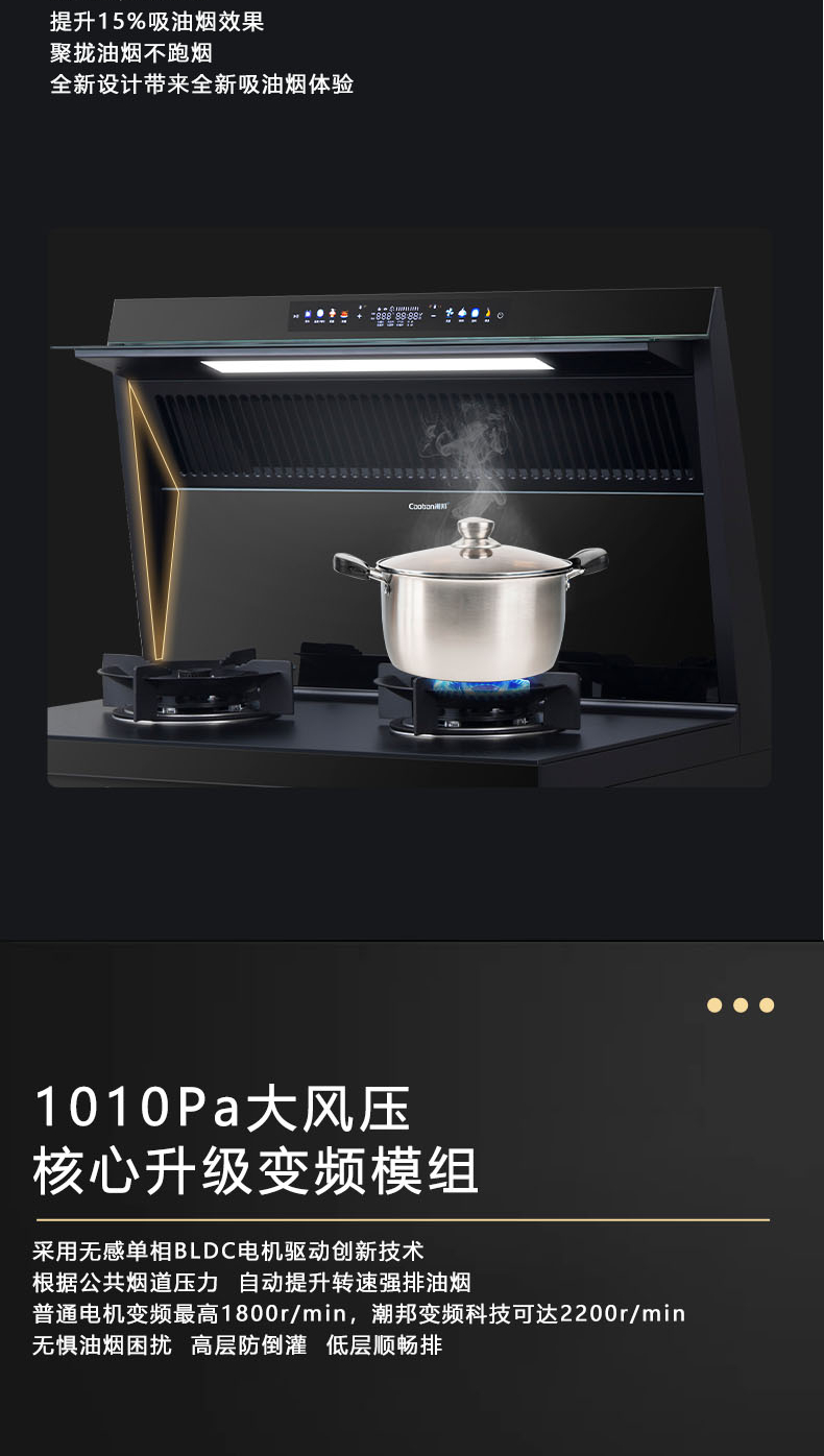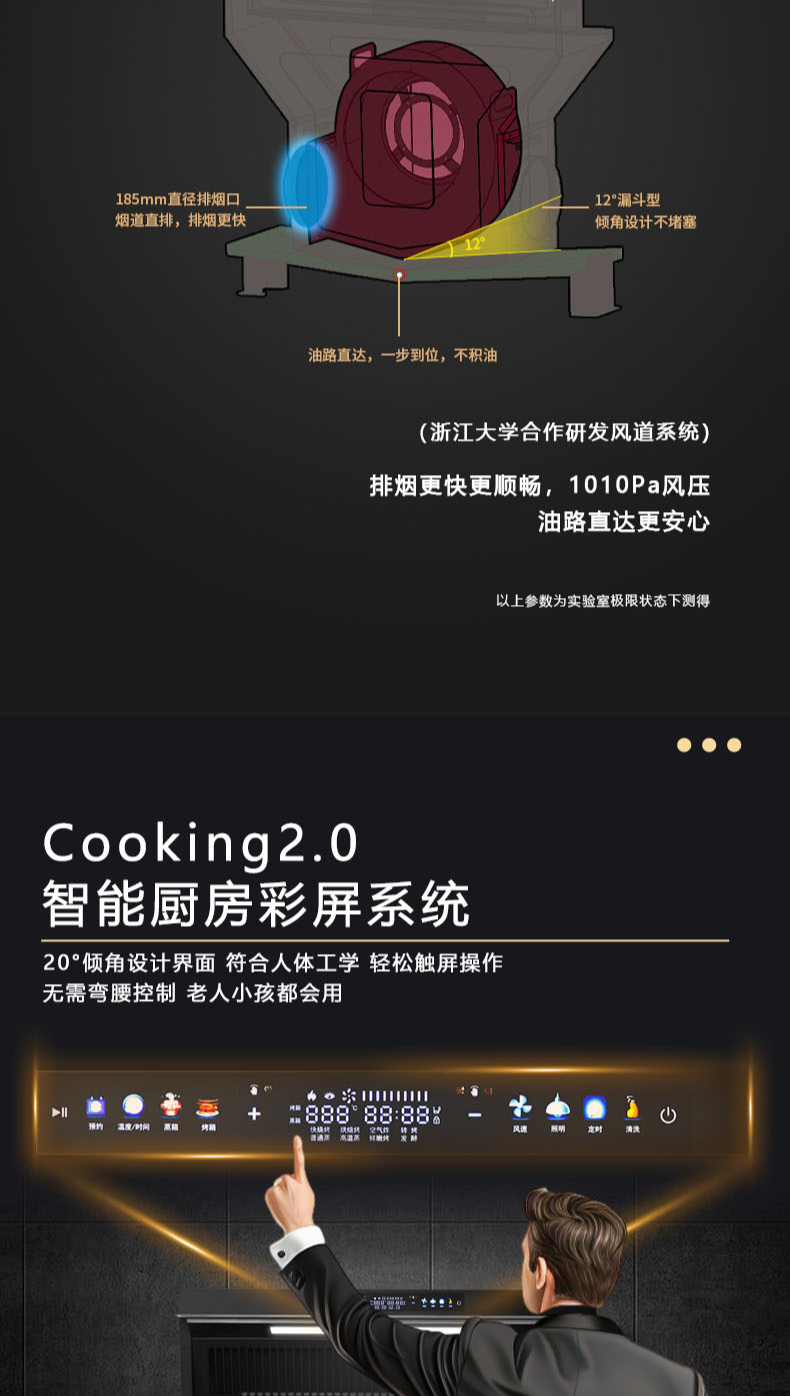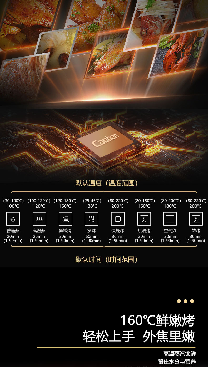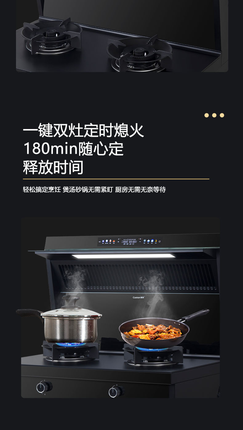 26m3每分巡航風(fēng)量,左烤右蒸烤,旋風(fēng)轉(zhuǎn)烤,智能彩屏,揮手感應(yīng),雙灶定時(shí)熄火