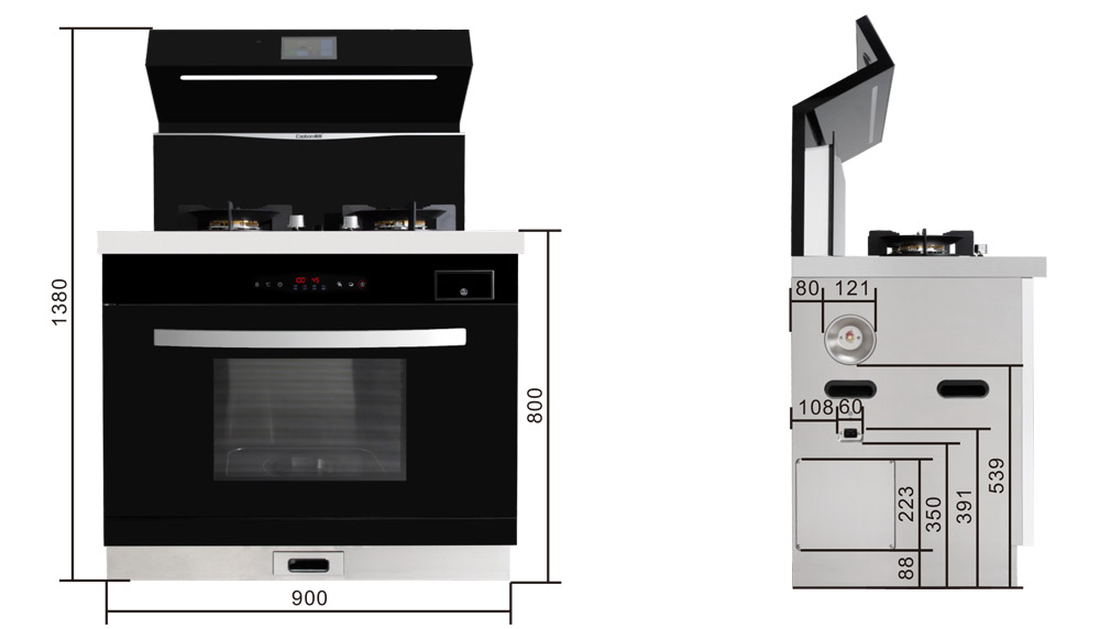 整機由全鋼化玻璃、航空鋁、油磨拉絲304鋼均為優等選材,打造重量級109kg,遠超市面上大部分集成灶的重量;